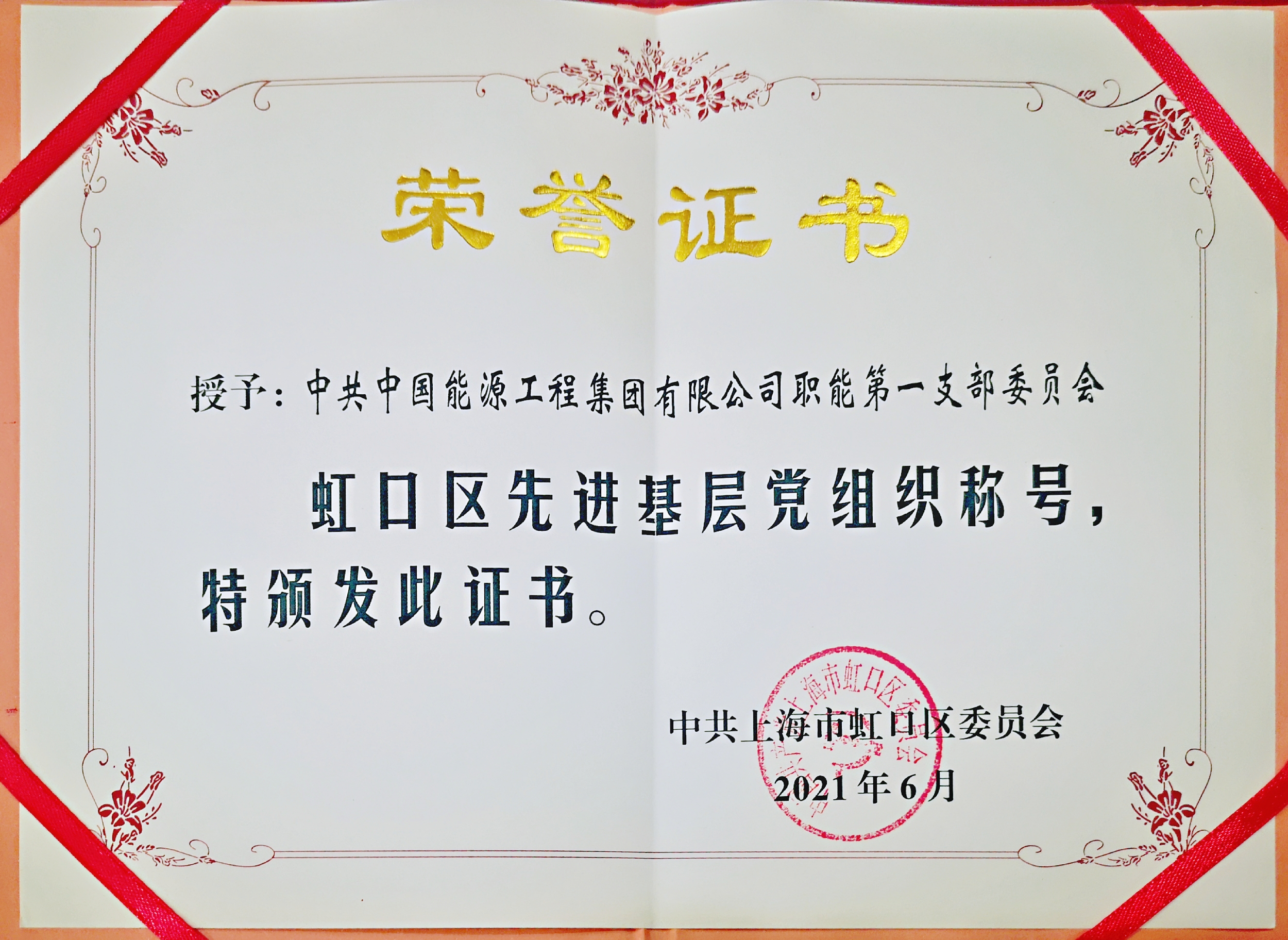 永遠跟黨走——中國能源工程集團職能第一黨支部榮獲“虹口區先進基層黨組織”